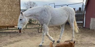 Skip came to us as an owner surrender. He was mid 20s and had major arthritis in his knees. He lived with us at LBL for about 3 years and became pasture mates with Spirit.