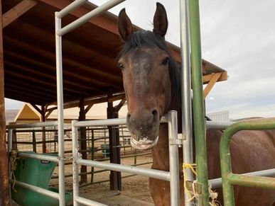 Maru was a 17 year old thoroughbred who was an owner surrender. She came to LBL on the thin side and was blind in one eye. She was a love bug and just wanted to play in the round pen. She was with LBL for a year and then suffered a stroke, causing paralysis to her right side. She had a hard time walking and the vet believe she had a brain tumor. Unfortunately, LBL made the hard decision to let her cross the rainbow bride. Maru will forever be loved and missed!