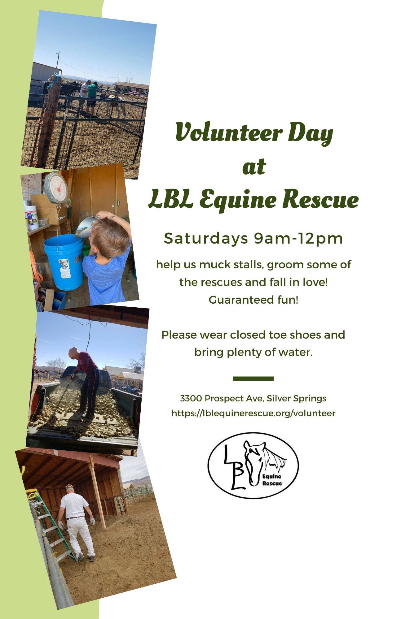 LBL Equine Rescue currently provides care for 10+ horses. That is enough work for lots of people! We always have room for more volunteers.